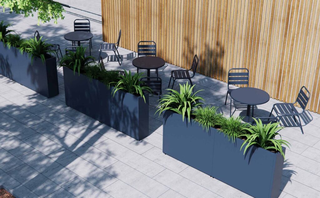En Buildco Design hemos diseñado estas jardineras metálicas para múltiples usos, ya sea en jardín, terraza o para dividir espacios en hoteles y restaurantes. La combinación de tamaños, colores y accesorios compatibles permite crear entornos personalizados con total flexibilidad. Estas jardineras ofrecen el equilibrio perfecto entre diseño, durabilidad y funcionalidad.